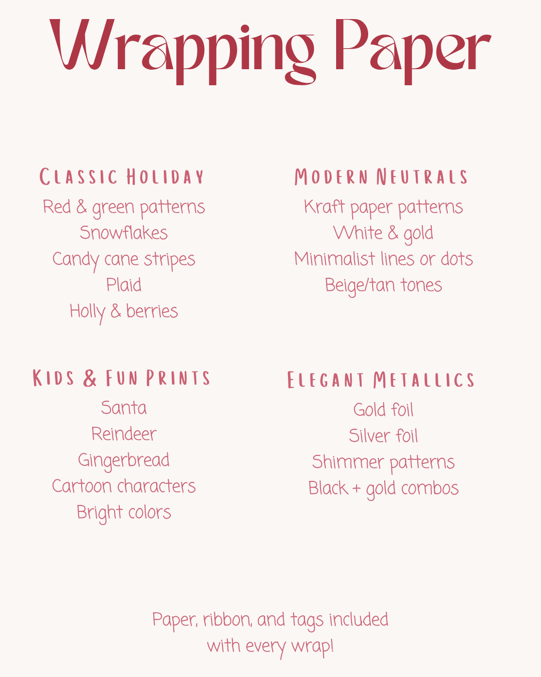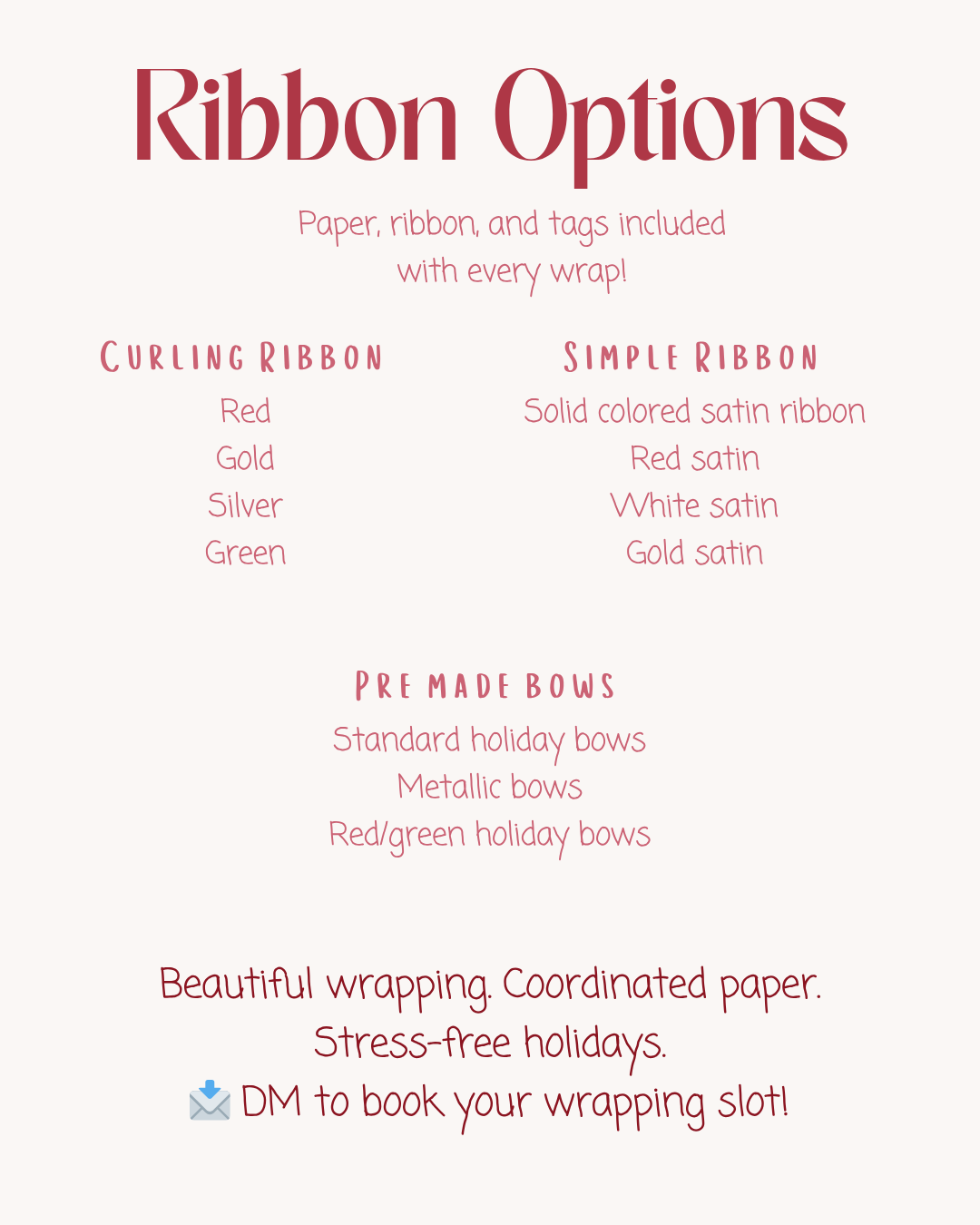 This holiday season let Madalyn help make the season even more magical with professional gift wrapping services.